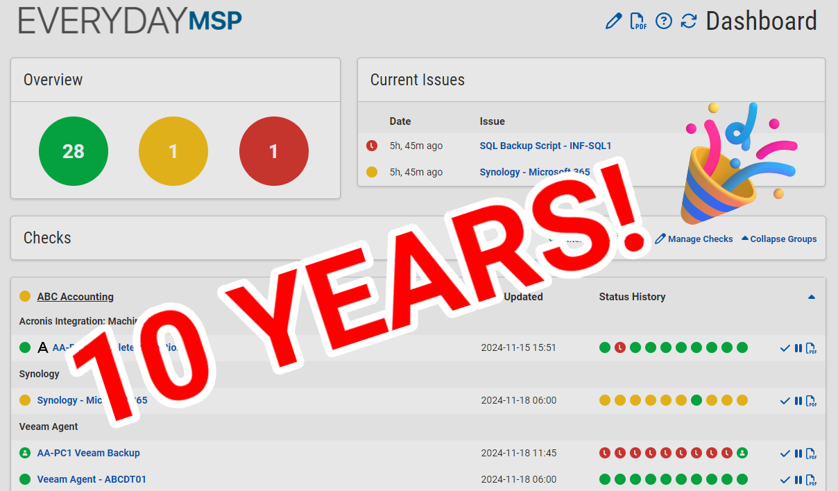 CheckCentral started out as a simple way to monitor your backups and other jobs based on the status received in the email notifications from those jobs. Since then, thousands of customers have joined CheckCentral to simplify monitoring of their backups. We've also added many features and improvements along the way, including: