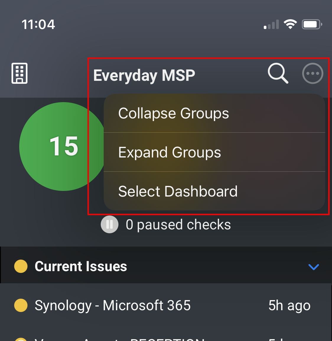 To switch custom dashboards, tap the dashboard name at the top of the app, or use the 3 dots on the top-right of the app: