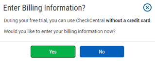 See Billing Information in this document for more detail. By clicking "No" you'll be taken to the Dashboard page.