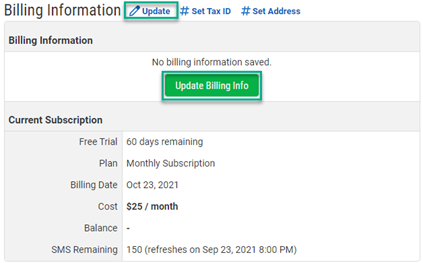 ." If you've yet to add any billing info, you can also click "Update Billing Info."