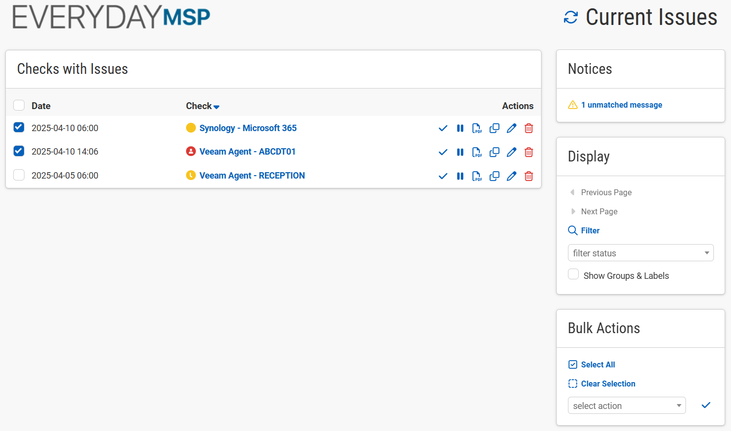 You can also apply your templates to existing checks, either one at a time or via the Bulk Edit feature on the Checks page.