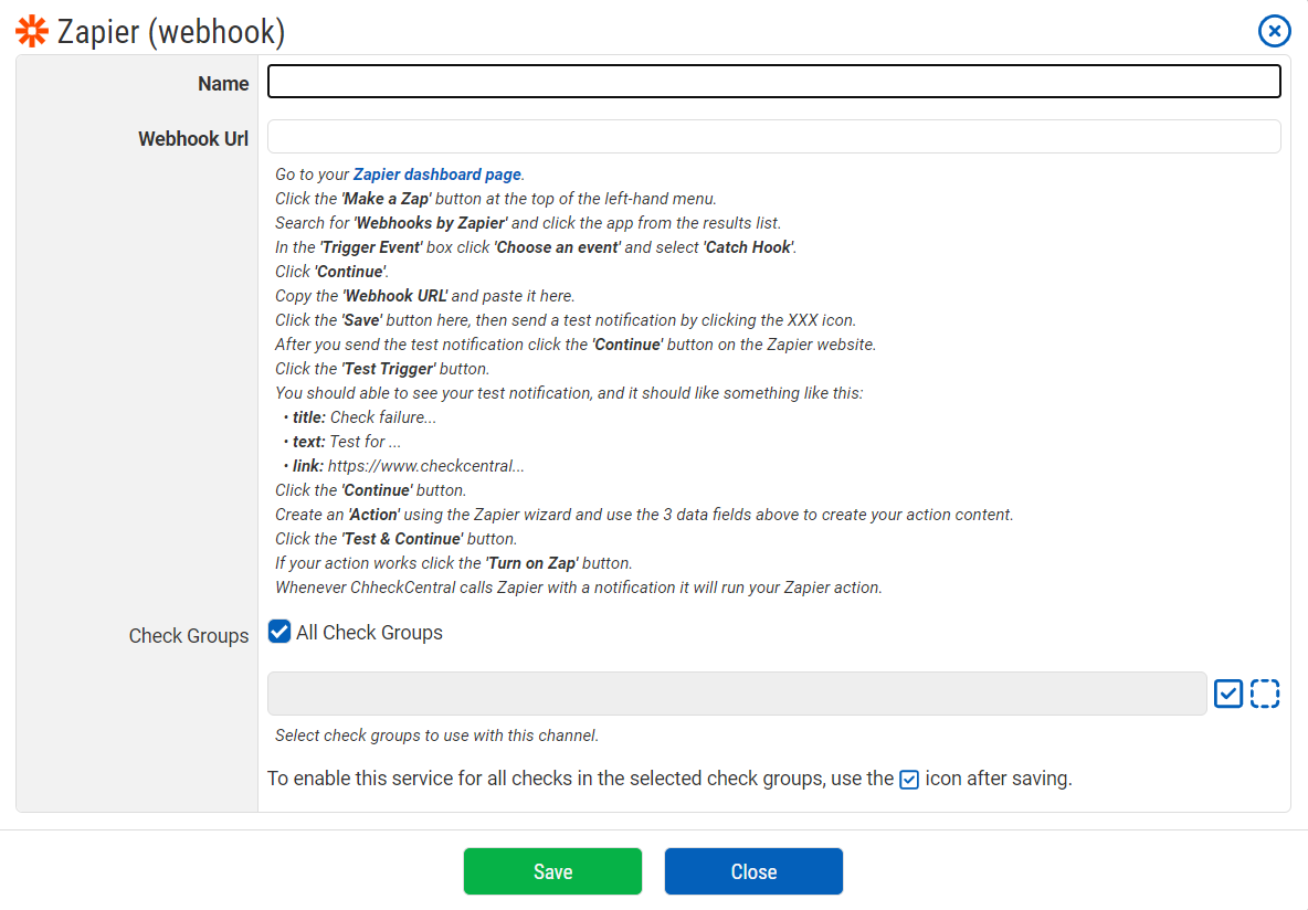 We're pleased to announce that we've added Zapier as a notification channel for your CheckCentral notifications! To get started with it, login to your CheckCentral dashboard, then click Notifications > Organization. From there you can add it as a new channel, and detailed instructions are in the configuration window.