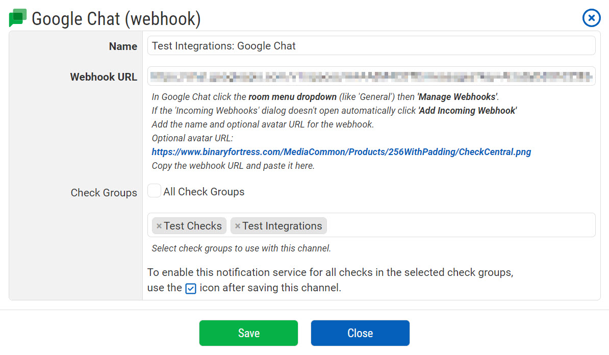 We're pleased to announce that we've added Google Chat as a notification channel for your CheckCentral notifications! To get started with it, login to your CheckCentral dashboard, then click Notifications > Organization. From there you can add it as a new channel, and detailed instructions are in the configuration window.