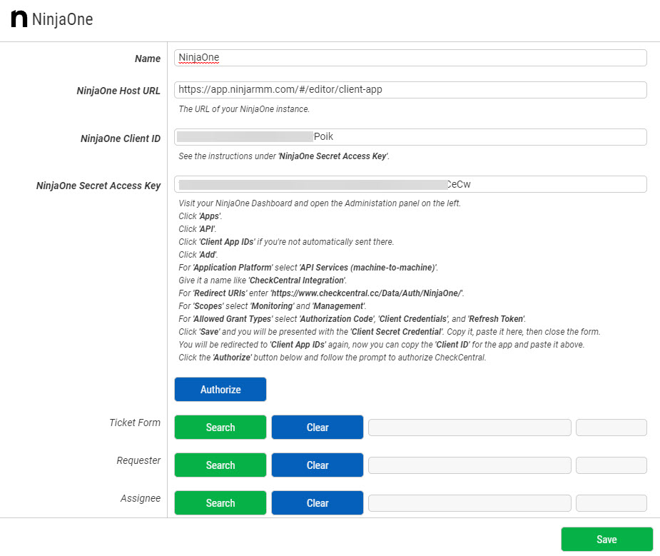 We are excited to announce the addition of NinjaOne as an External Ticketing integration in CheckCentral. Once configured, CheckCentral will automatically open tickets in NinjaOne for failed Checks. It will keep the tickets up to date with notes for subsequent warnings and failures, and will automatically close the ticket when the Check reverts to success.